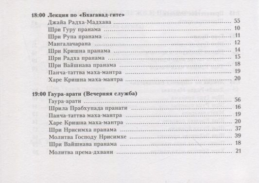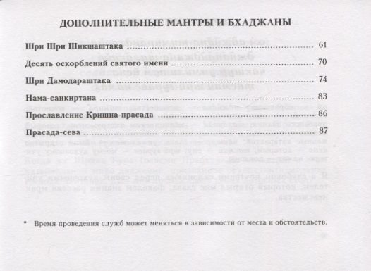 Предлагаемое вниманию читателя издание представляет собой аккуратно и с большой любовью подобранный сборник молитв, фактически составляющих ежедневный литургический цикл, принятый в современной традиции гаудия-вайшнавов. Смысл помещенных здесь служб способен не только углубить философское понимание каждого верующего вайшнава, но и существенно обогатить духовный опыт практикующего, наполняя его ежедневную деятельность широким спектром духовных эмоций.