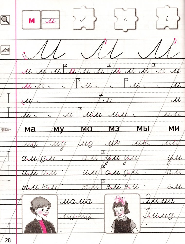 В пособии приведены образцы написания букв, их элементы, прописи для упражнений по отработке навыков письма букв, их элементов и слов.