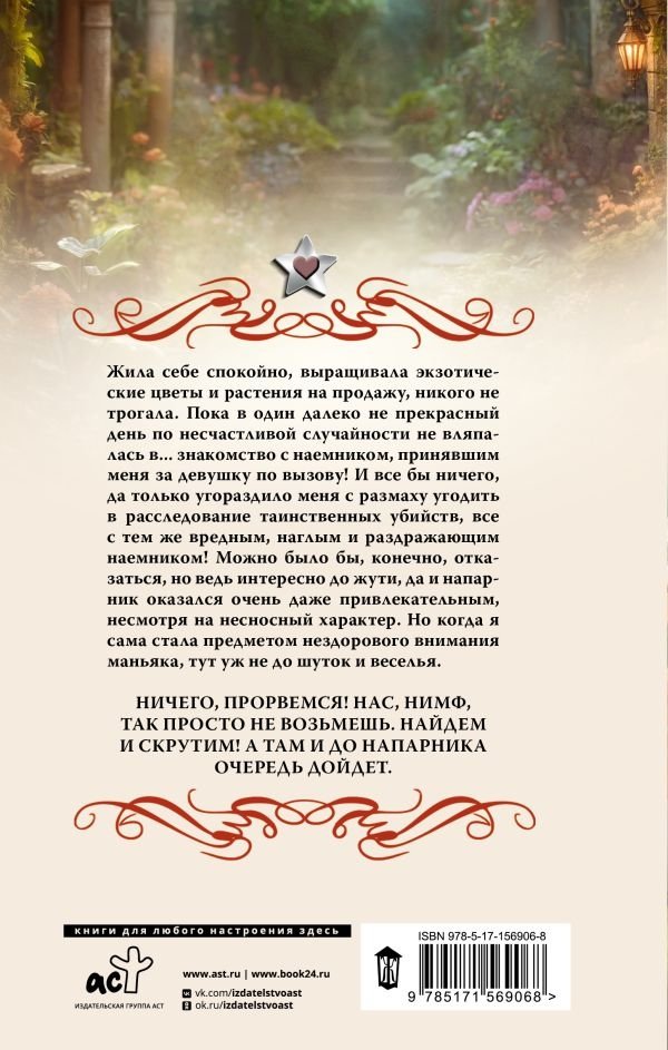 Жила себе спокойно, выращивала экзотические цветы и растения на продажу, никого не трогала. Пока в один далеко не прекрасный день по несчастливой случайности не вляпалась в... знакомство с наемником, принявшим меня за девушку по вызову! И все бы ничего, да только угораздило меня с размаху угодить в расследование таинственных убийств, все с тем же вредным, наглым и раздражающим наемником! Можно было бы, конечно, отказаться, но ведь интересно до жути, да и напарник оказался очень даже привлекательным, несмотря на несносный характер. Но когда я сама стала предметом нездорового внимания маньяка, тут уж не до шуток и веселья.