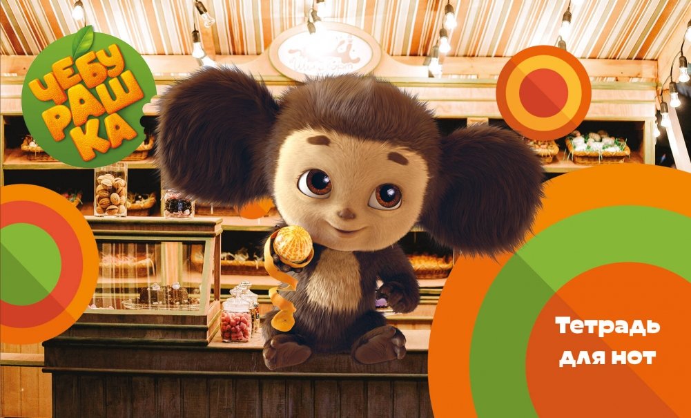 Тетрадь для нот. Твой друг Чебурашка (8 л., А5, горизонтальная, скрепка)