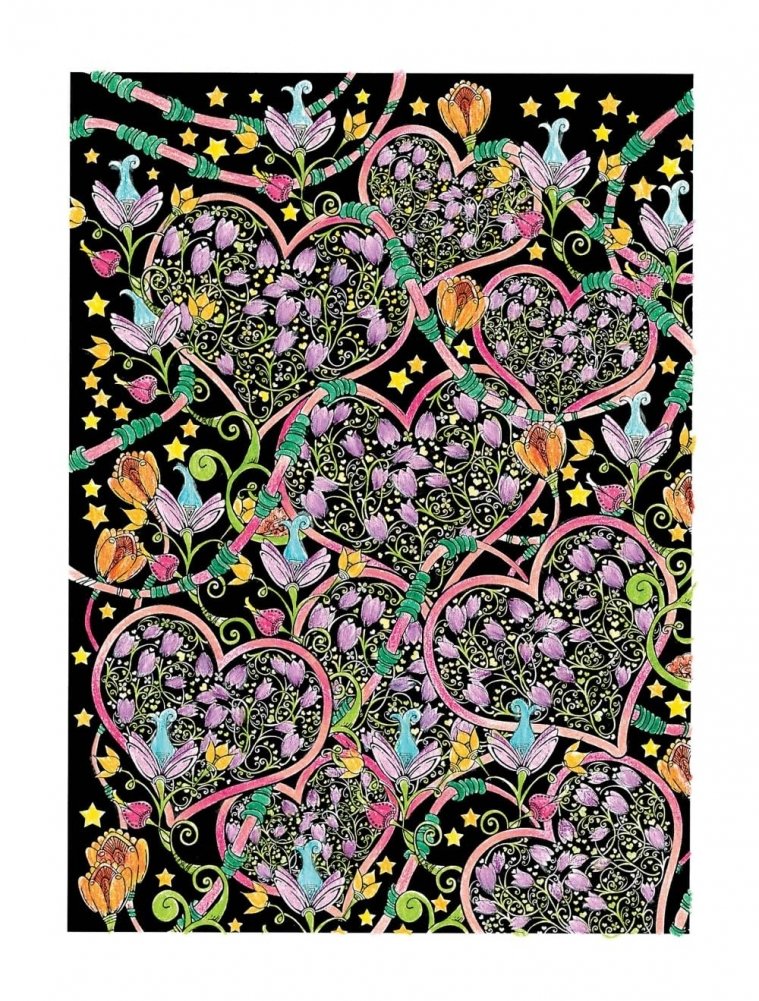 Celebrate love and romance any day of the year with this charming coloring book! The 31 original illustrations feature beautiful designs overflowing with hearts, flowers, butterflies and birds…many printed with dramatic black backgrounds that create a striking color finish. The variety of sweet themes offer an array of wonderful coloring possibilities and will encourage you to relax and unwind as you dream about a “happily ever after.” The art is printed on one side only, and the pages are perforated for easy removal and display.