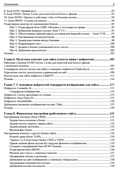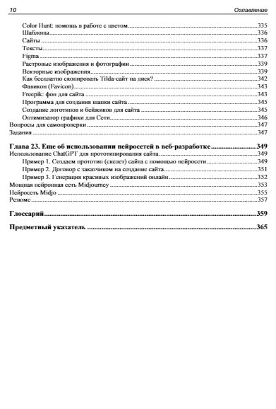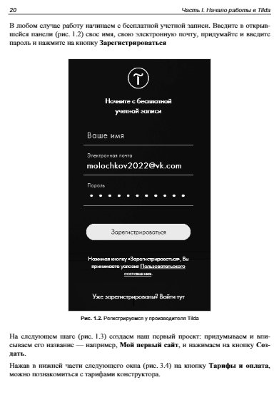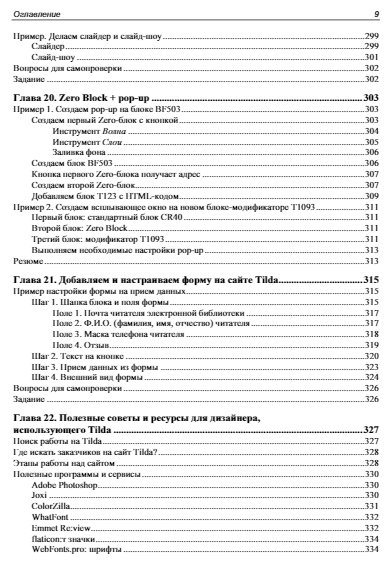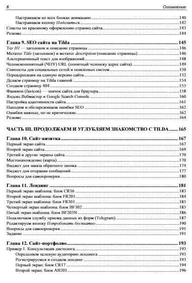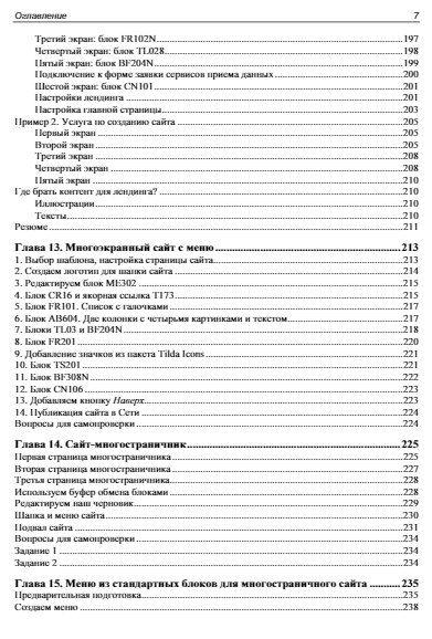 Подробно рассмотрена работа с конструктором сайтов Tilda, позволяющим создавать сайты любой сложности из готовых блоков и шаблонов без программирования. Приведены рекомендации по использованию панели разработчика и советы по оптимальным настройкам. Даны пошаговые инструкции для создания одностраничного сайта-визитки, лендинга, многостраничного сайта, сайта-портфолио и интернет-магазина. Описан принцип работы с Zero block, рассказано о публикации меню, галереи изображений, об использовании форм и виджетов, добавлении анимации и видео . Рассмотрена работа со шрифтами, регистрация и подключение домена, добавление SSL-сертификата. Отдельное внимание уделено интеграции интернет-магазина с платежными системами. Читатели узнают, как правильно организовать работу над сложными проектами и разрабатывать сайты на заказ.