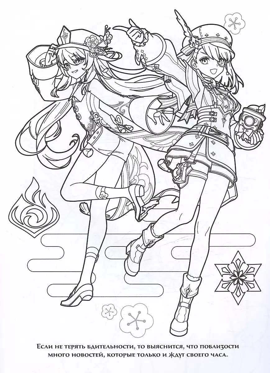 Раскраска формата А4 с популярными героями GENSHIN IMPACT. В раскраске 32 страницы, каждая из которых вдохновляет волшебной атмосферой и детально проработанными, удобными для раскрашивания карандашами, изображениями. Погрузись в чарующий мир эстетики GENSHIN!