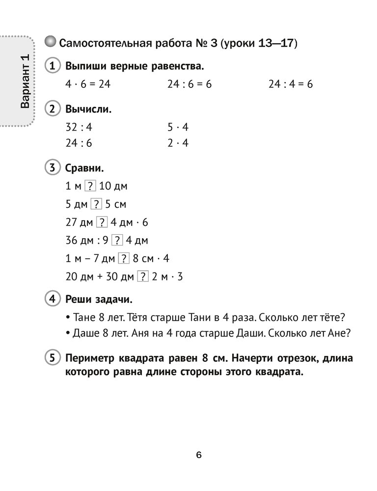 Пособие составлено в соответствии с учебной программой. Каждая самостоятельная и контрольная работа представлена в двух вариантах и соотносится с содержанием учебного пособия «Математика. 3 класс» (авторы Г. Л. Муравьёва, М. А. Урбан). В издании также представлены задания для проверки навыков устных вычислений.