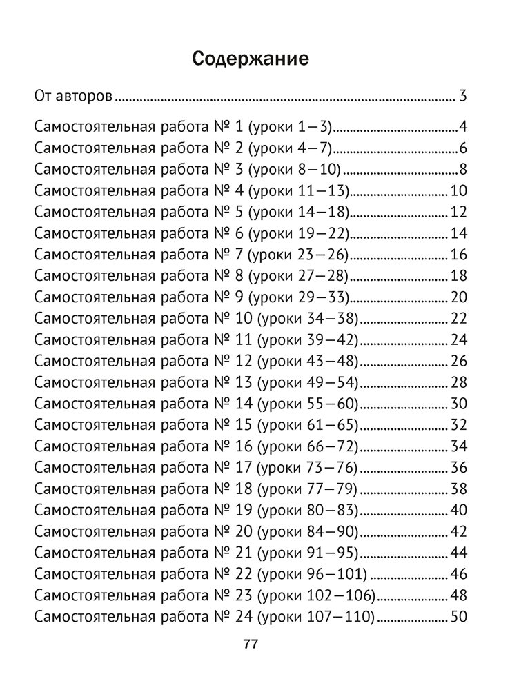 Пособие составлено в соответствии с учебной программой. Каждая самостоятельная и контрольная работа представлена в одном варианте и соотносится с содержанием учебного пособия «Математика. 2 класс» (авторы Г. Л. Муравьёва, М. А. Урбан). В издании также размещён материал для проверки навыков устных вычислений.