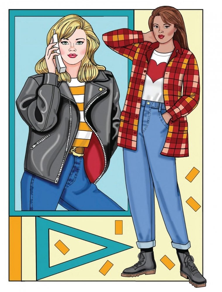 - Retro Styles: Transport yourself into the fabulous 1990s with 31 illustrations displaying fashion trends, from preppy to grunge.