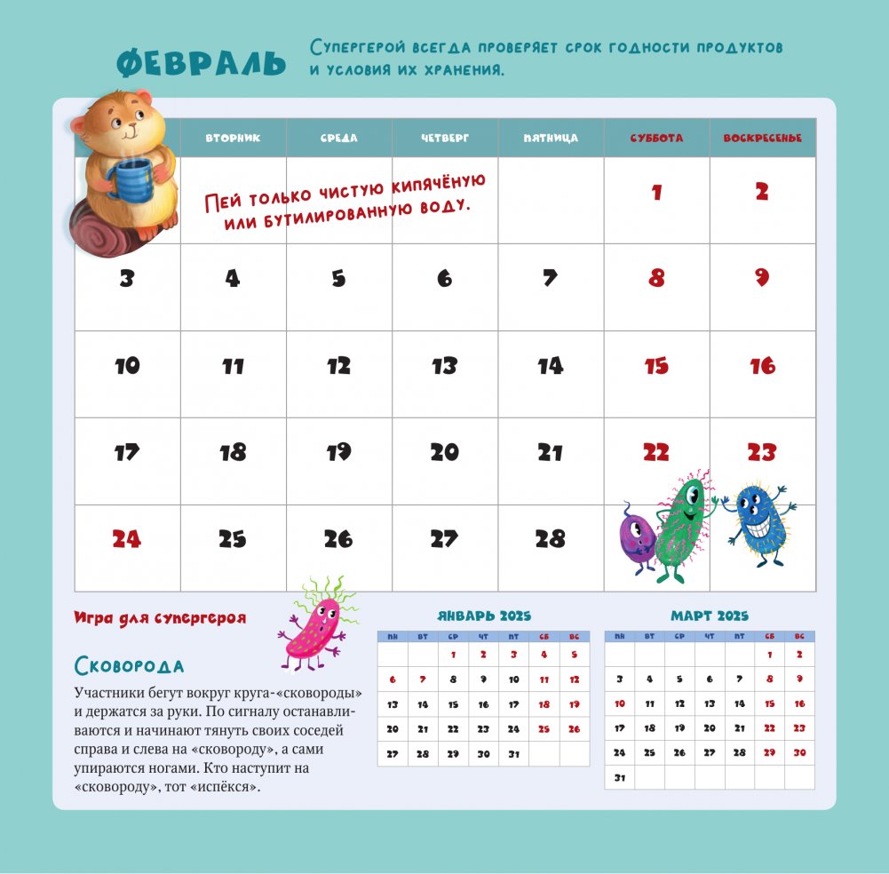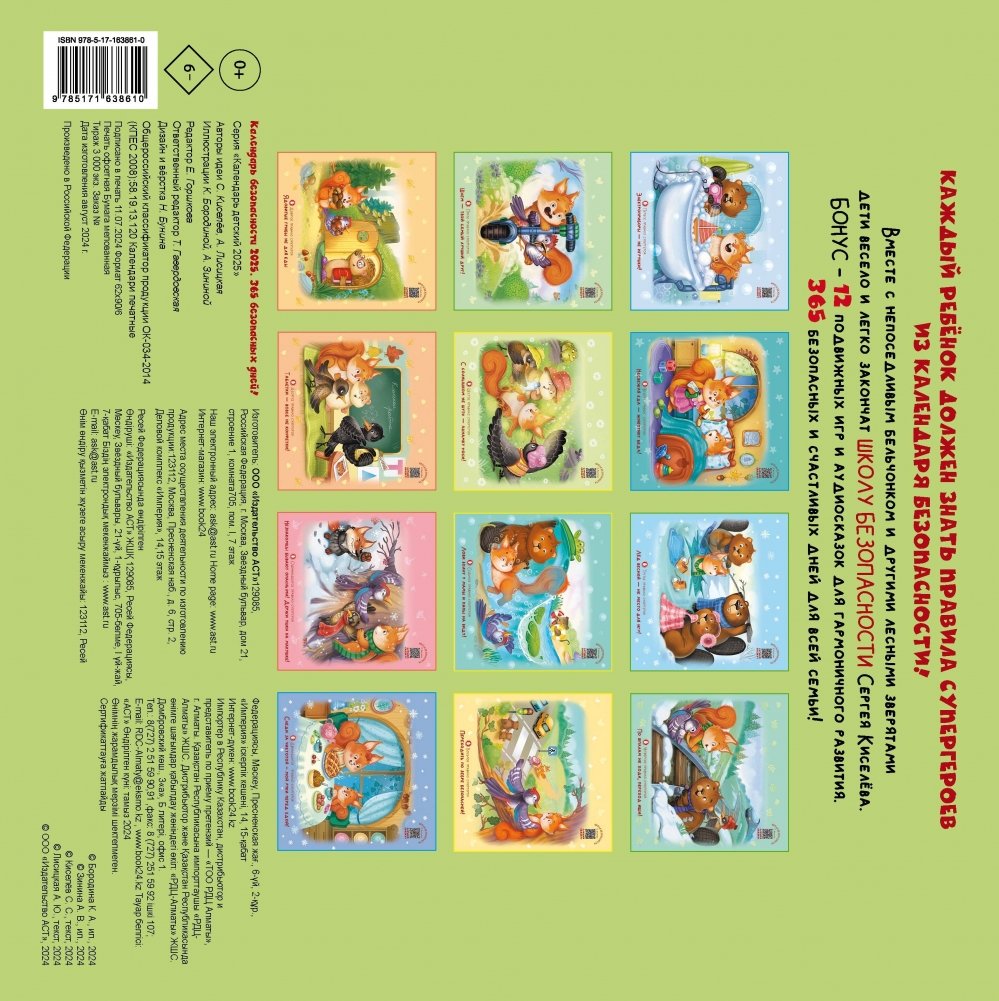 Полезный и увлекательный календарь-планер поможет ребёнку выучить важные правила безопасности. Как нужно перходить дорогу? Почему опасны электроприборы? Где можно кататься на велосипеде и самокате? Чем таблетки отличаются от конфеток? Эти и многие другие важные вопросы задают герои целых 12 аудиосказок, которые доступны по QR-кодам. Вместе с весёлыми зверятами так легко и просто понять и выучить важные правила безопасности! Подвижные игры на каждый месяц помогут закрепить правила и отвлекут от гаджетов. В конце года маленькие почемучки получат диплом популярной Школы безопасности Сергея Киселева.