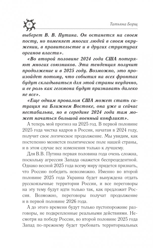 Татьяна Борщ — любимый народный астролог России, лауреат премии Копенгагенского астрологического конгресса, телеведущая, историк, автор целого ряда бестселлеров.