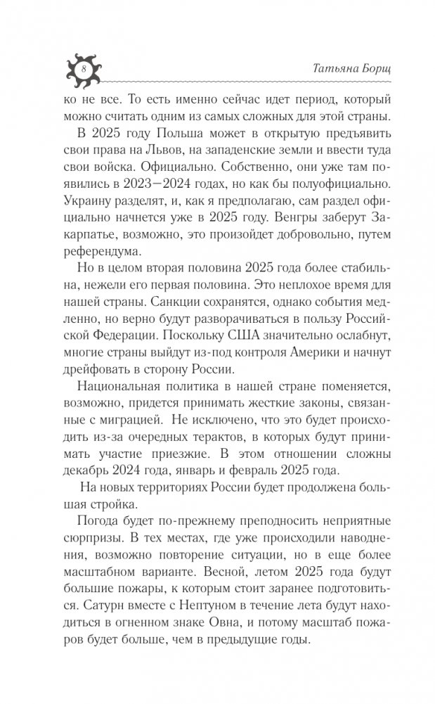 Татьяна Борщ — любимый народный астролог России, лауреат премии Копенгагенского астрологического конгресса, телеведущая, историк, автор целого ряда бестселлеров.