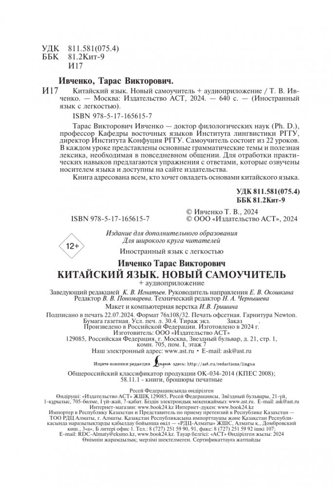 Тарас Викторович Ивченко — доктор филологических наук (Ph. D.), профессор Кафедры восточных языков Института лингвистики РГГУ, директор Института Конфуция РГГУ. Самоучитель состоит из 22 уроков.