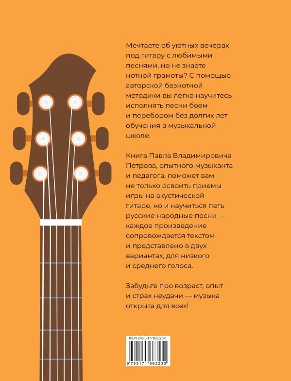 Книга Павла Владимировича Петрова, опытного музыканта и педагога, поможет вам не только освоить приемы игры на акустической гитаре, но и научиться петь русские народные песни — каждое произведение сопровождается текстом и представлено в двух вариантах, для низкого и среднего голоса.