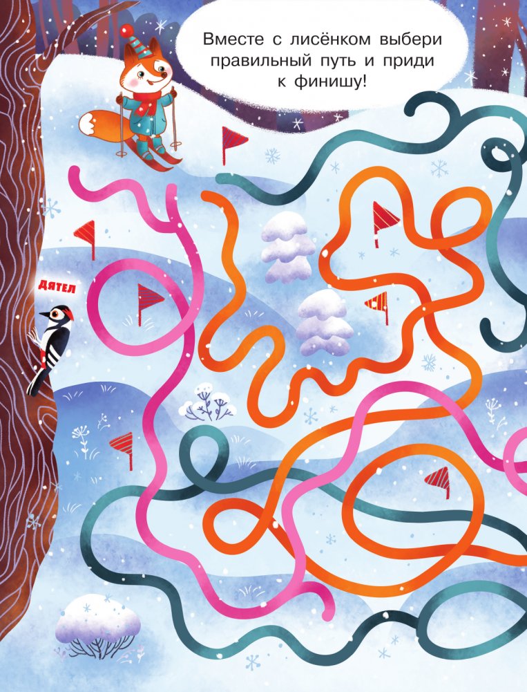 Малыш сможет проходить лабиринты карандашом или пальчиком, развить логическое мышление, внимание и координацию. Увлекательные лабиринты, красочные иллюстрации и зимняя тематика подарят массу радости и новогоднего настроения.