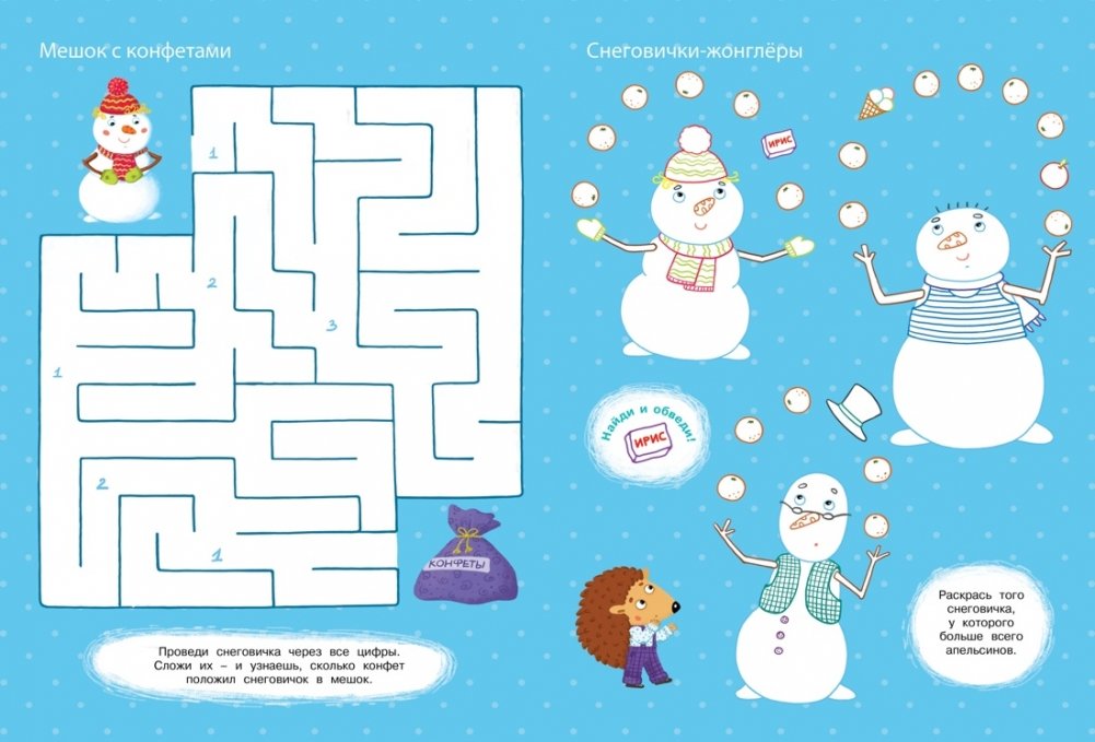 В Новый год всегда много хлопот: приготовить вкусные угощения, украсить дом, нарядить ёлку и упаковать подарки для близких и друзей. А у друзей-снеговичков свои планы перед праздниками: покататься на санках, поесть конфет, помочь Дедушке Морозу подготовиться к празднику и просто повеселиться от души. Но без помощи они с этим не управятся! Вместе с неугомонными снеговичками проходи лабиринты, ищи спрятанные слова, сделай новогодние украшения и много-много чего ещё. В книге ты найдёшь яркие наклейки, занимательные головоломки и красочные маски для новогоднего праздника! Весёлые каникулы ждут!