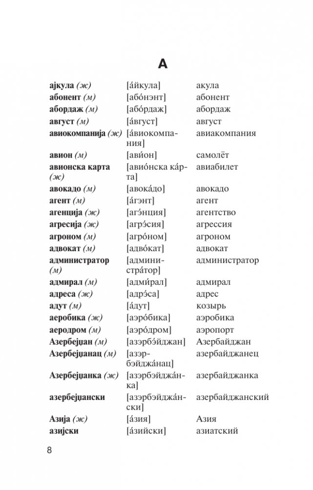 Словарь предназначен для всех, кто начинает изучать сербский язык, и может быть использован на занятиях с преподавателем или при самостоятельном изучении.