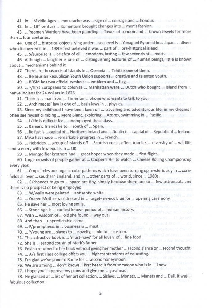 Учебное пособие предназначено для подготовки к олимпиадам, ЦТ, ЦЭ по английскому языку учащихся 9-11 классов, включает в себя упражнения по разделам английской грамматики, которые имеют низкий процент выполнения, и справочные материалы по фразовым глаголам и устойчивым выражениям с предлогами. Материалы пособия могут быть использованы для подготовки ко всем этапам олимпиад (от школьного до республиканского), ЦТ, ЦЭ и т.д., как при индивидуальных занятиях, так и при работе в классе.