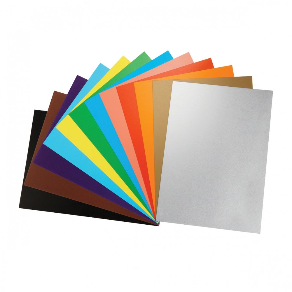 Картон «Мульти-Пульти» серии «Енот в космосе. Волшебный» А4 часто используют как основу для поделок. В данном наборе используется высококачественный мелованный картон с односторонним прокрасом и плотностью 220 г/м2. Внутри 12 листов картона 12-ти цветов, в том числе золотого и серебряного. Обложка набора выполнена из качественного целлюлозного картона.