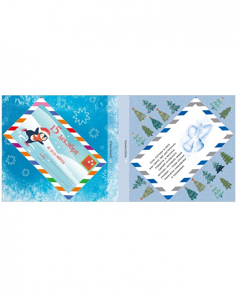 Каждая страничка адвент-календаря — это одно из писем Дедушки Мороза, в котором ребенка ждут задания, рецепты, инструкции для поделок и многое другое. Игра начинается 1 декабря. Всё, что нужно сделать взрослым, — аккуратно отрезать нужную страничку, сложить по линиям сгиба, заклеить наклейкой и спрятать секретное послание под подушку.