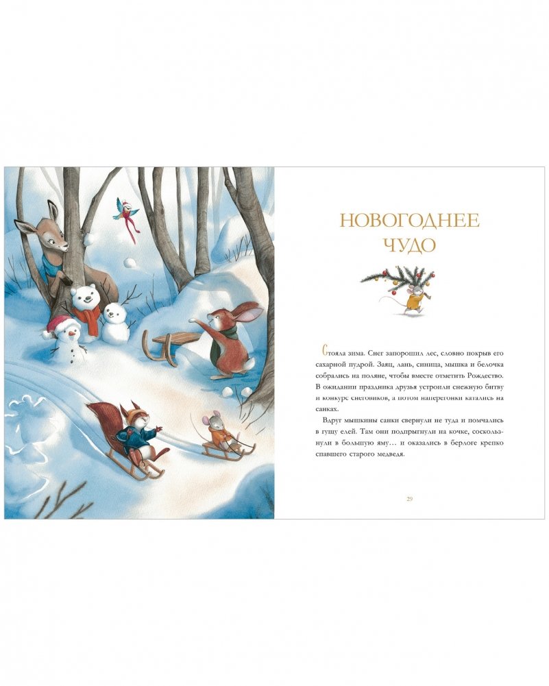Семейство барсуков, которое спасло настоящее чудо, малышка-мышка, которая помогла старому медведю отпраздновать Новый год, кот-пианист, который подружился с мышками, сестрички-сурки, которым помогли друзья и даже подарили цветок среди снега и холода, крольчонок, который собирал слова для путешественников и волшебников, пингвины, которые знают, что из ледяного океана можно выловить не только рыбу, но и… любовь!