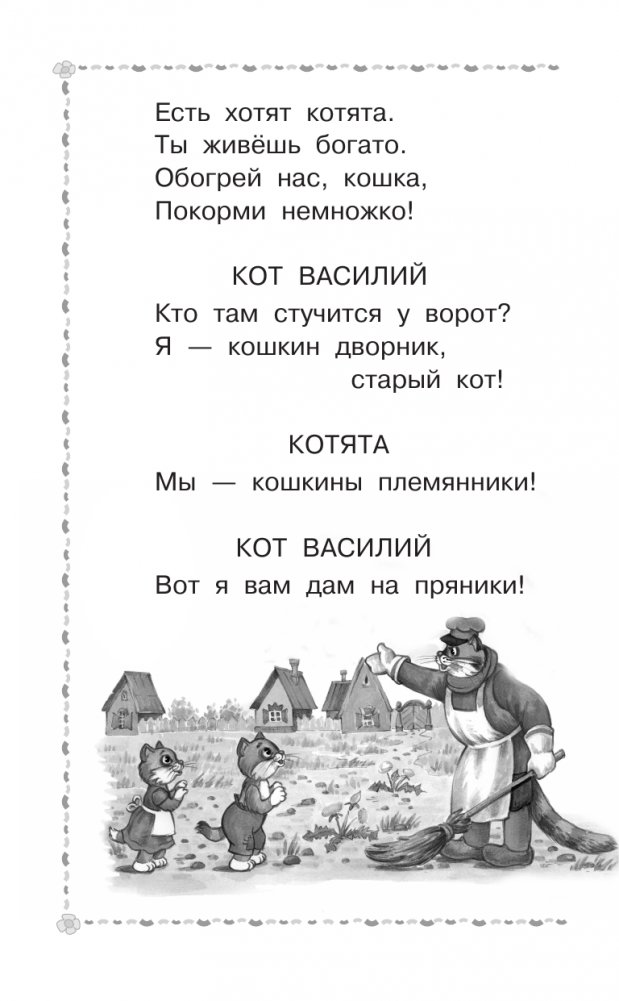 В книгу вошли сказки знаменитого поэта-классика Самуила Яковлевича Маршака. Но это не просто сказки, а сказки "для чтения и представления". Иными словами, поэт написал пьесы в стихах для детей, которые впоследствии стали классикой литературы, а также с большим успехом ставятся на сцене театров. В сборник вошли пять таких сказок-пьес — "Кошкин дом", "Теремок", "Петрушка-иностранец", "Сказка про козла" и "Двенадцать месяцев".