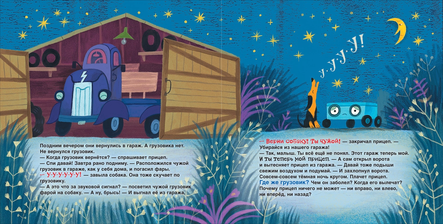 Выехал как–то утром грузовик из гаража – и заглох. Приехал эвакуатор и увез грузовик, а куда – неизвестно. Не может прицеп без своего грузовика, надо его найти! Малышу предстоит побывать на свалке старых машин и встретиться с таинственной автогадалкой Мамаздой. Как всегда, на помощь грузовику и прицепу приходят друзья. Написала эту книгу Анастасия Орлова – современная детская писательница, лауреат премий им. С. Маршака, К. Чуковского и Президента РФ в области литературы и искусства, победительница конкурса «Новая детская книга» и Национальной премии в области детской и подростковой литературы в номинации «Лучшее прозаическое произведение для детей» за книгу «Грузовик, а где прицеп?».