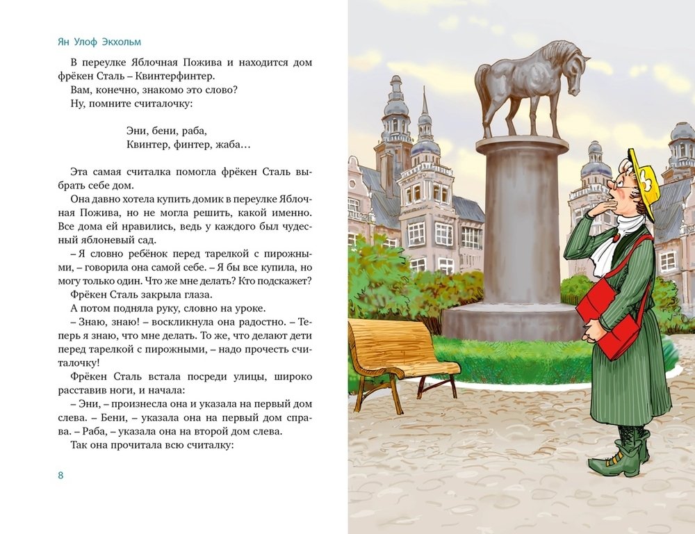 Ян Экхольм – известный шведский писатель. Его повесть-сказка «Тутта Карлссон, Первая и Единственная, Людвиг Четырнадцатый и другие» о дружбе цыплёнка и лисёнка стала одной из самых люби- мых детских книг во всём мире. Ян Экхольм также написал весёлые истории о фрёкен Сталь из городка Гдеугодно, которая просто нико- му не даёт скучать. В книгу вошли четыре повести об этой неугомон- ной и любопытной фрёкен, которые обязательно увлекут не только детей, но и родителей.