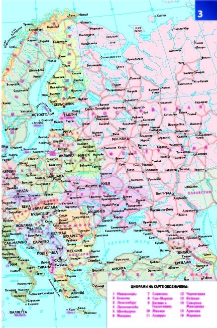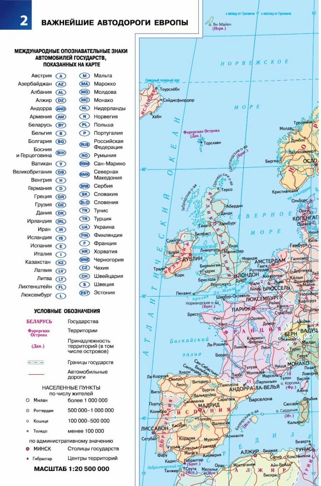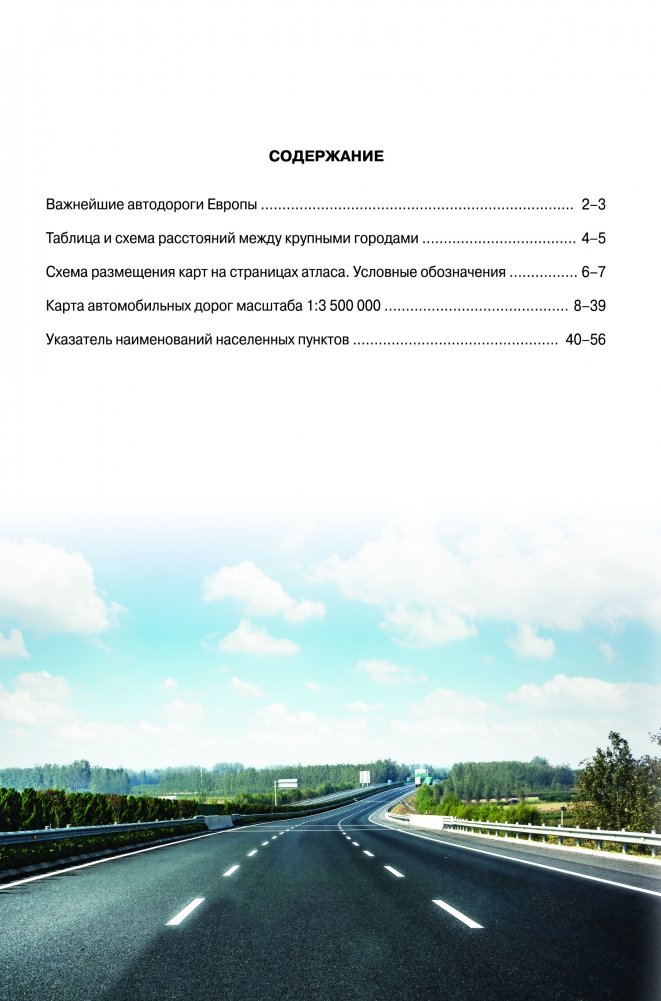 На страницах атласа в удобном для использования формате вы увидите: километраж расстояний, указатель наименований населенных пунктов, таблица и схема расстояний между крупными городами, важнейшие дороги Европы.