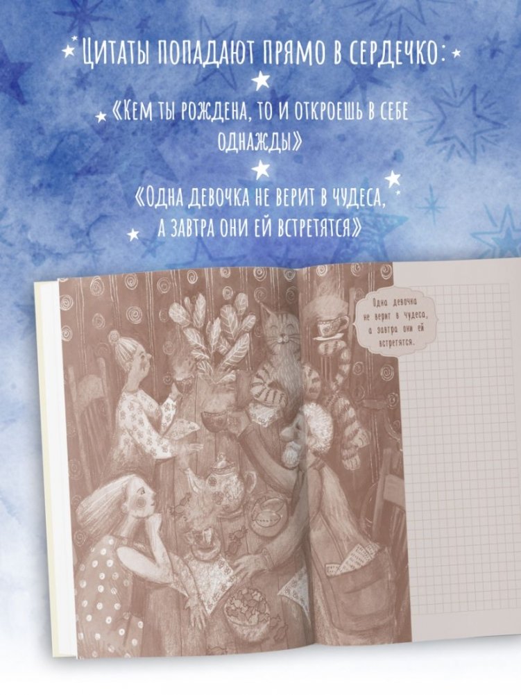 От авторов проекта целебных сказок "Одна девочка собирала стаю" - самый уютный дневник на свете. Проект сделан с любовью к каждой из его будущих хозяек. И к лесу, конечно, тоже. Ведь он напечатан на бумаге, произведённой с учетом бережного использования лесных ресурсов. Выбирайте, какое из двух оформлений вам по душе. "Радость" - позитивных эмоций Или "Уютная лиса" - для мягкости и пушистости.