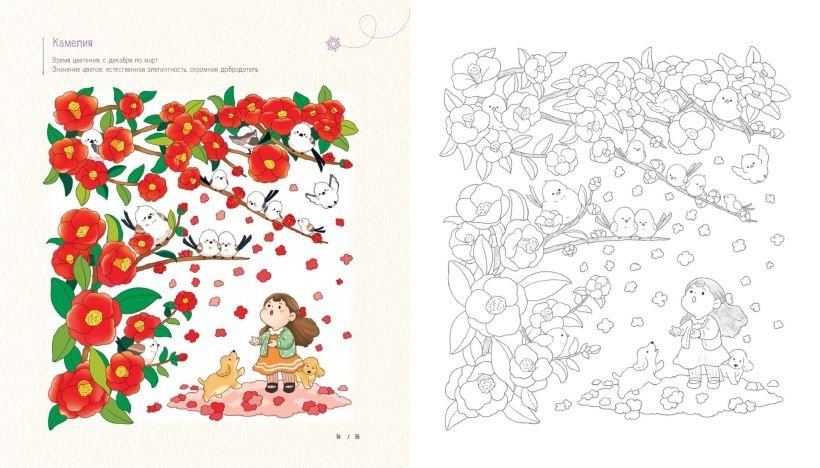 Мотивы корейской зимы украшают страницы этой раскраски. Поймайте невесомый момент уюта и спокойствия, раскрашивая прекрасные иллюстрации. Читайте подписи к изображениям и переноситесь в снежный зимний день.
