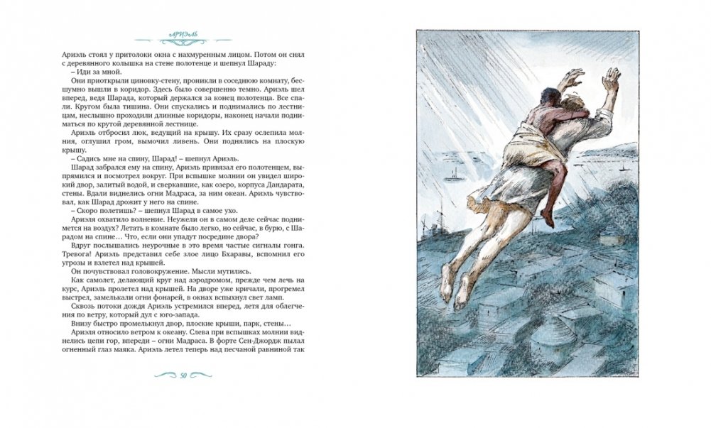 В Индии, в тайной школе, где готовят медиумов, прорицателей, гипнотизёров и ясновидящих, живёт юноша по имени Ариэль. Он не помнит ни своего настоящего имени, ни своих родных, ни того как попал туда. По воле директора школы над Ариэлем проводят научный эксперимент, и вскоре главный герой обнаруживает, что умеет летать… Откроет ли эта удивительная способность юноше путь к свободе или впереди его ждут новые испытания? В нашем издании фантастическая история Александра Беляева об Ариэле проиллюстрирована Анатолием Иткиным – заслуженным художником России, награждённым почётным дипломом «Образ книги» за особый вклад в искусство книжной графики и верность эстетическим принципам.