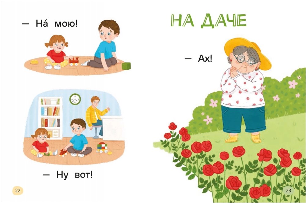 В этой книге собраны короткие истории, которые прекрасно подойдут для первого чтения. Крупный шрифт комфортен для зрения, а милые персонажи запомнятся ребенку и не дадут ему заскучать. В конце вы найдете задания, выполнив которые ребенок разовьет слуховое внимание и познакомится со звукоподражательными словами и междометиями. В серию «СКОРОШКОЛА. Первое чтение» входит 4 книги разного уровня сложности — от чтения слогов до небольших текстов. Книги предназначены для детей от 5 лет.