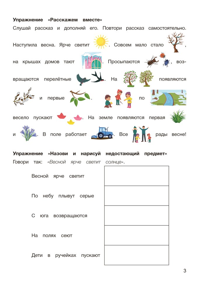 Учебное наглядное пособие предназначено для работы с детьми дошкольного возраста с нарушениями речи. Задания направлены на обогащение и закрепление словарного запаса, уточнение значения слов, закрепление навыков словообразования и словоизменения, развитие связной речи. Содержание пособия охватывает пять тематических блоков: «Весна», «Семья», «Праздник 8 Марта», «Город. Улица», «Транспорт».