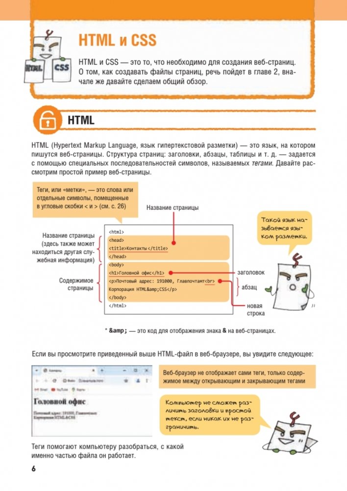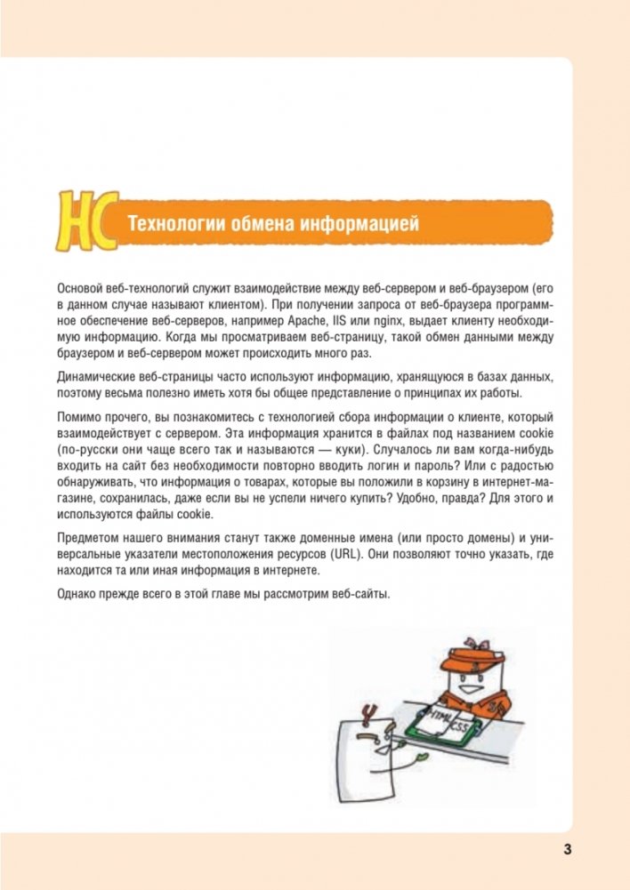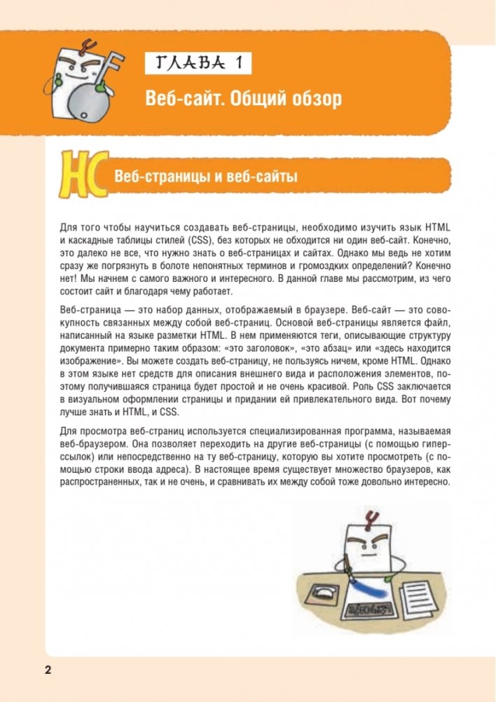 Книга очень похожа на комикс, а разобраться с веб-разработкой вам помогут огромное количество иллюстраций и персонаж по имени Закладка, который сопровождает текст понятными и смешными комментариями.