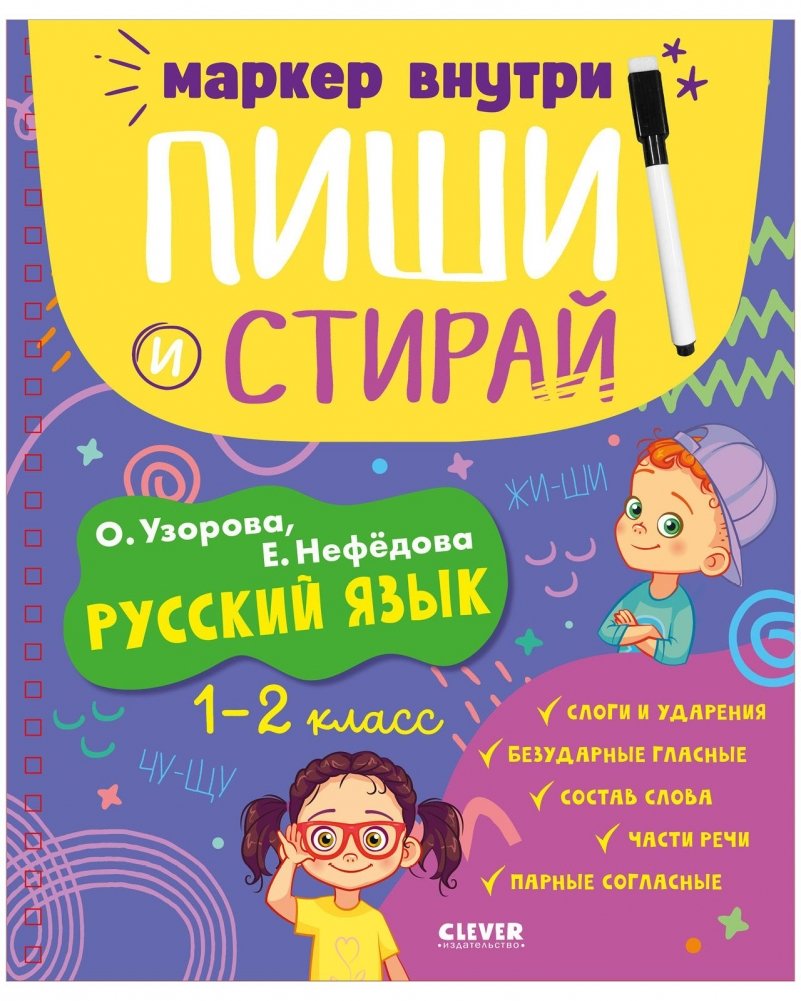 «Русский язык. 1-2 класс» — многоразовая тетрадь-тренажер, которая поможет школьникам быстро справляться с домашними заданиями и писать контрольные работы на одни пятерки. В комплекте есть маркер, след которого легко стирается со страниц!