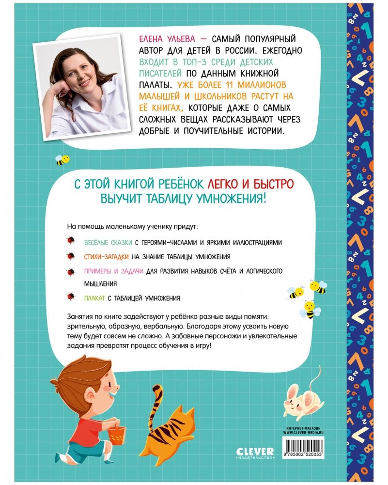Елена Ульева — самый популярный автор для детей в России. Ежегодно входит в топ-3 среди детских писателей по данным Книжной палаты. Уже более 11 миллионов малышей и школьников растут на ее книгах, которые даже о самых сложных вещах рассказывают через добрые и поучительные истории.