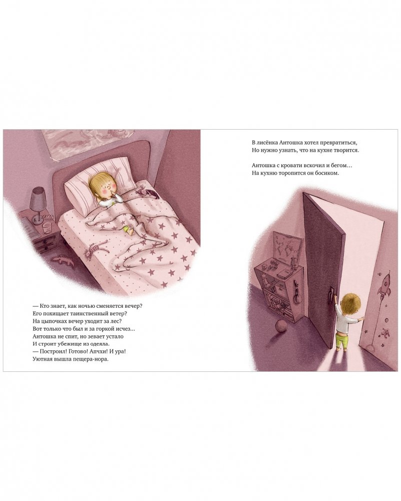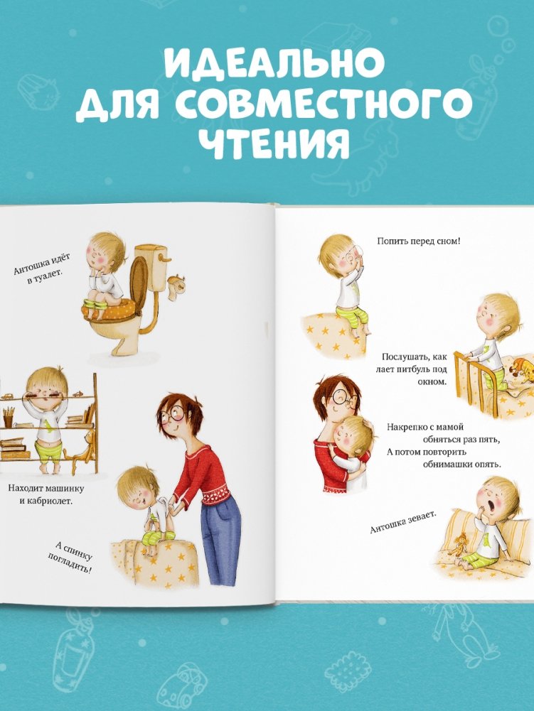 Сколько же дел перед сном у малыша Антошки: попить воды, поиграть в машинки, послушать собачий лай… Спать совершенно некогда! А чем занята в это время мама? Сейчас Антошка все выяснит!