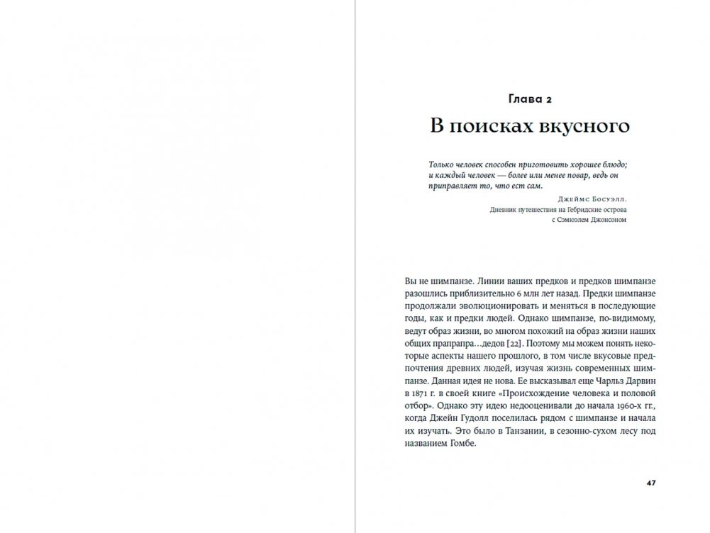 Вы узнаете о роли вкусовых предпочтений в создании первых орудий труда и вымирании гигантских млекопитающих, об эволюции самых аппетитных и питательных плодов и о формировании нашей социальности. А на десерт вам предложат лучший способ квасить мастодонта, рассказ о связи сыра с палеолитическим искусством — и много чего еще.