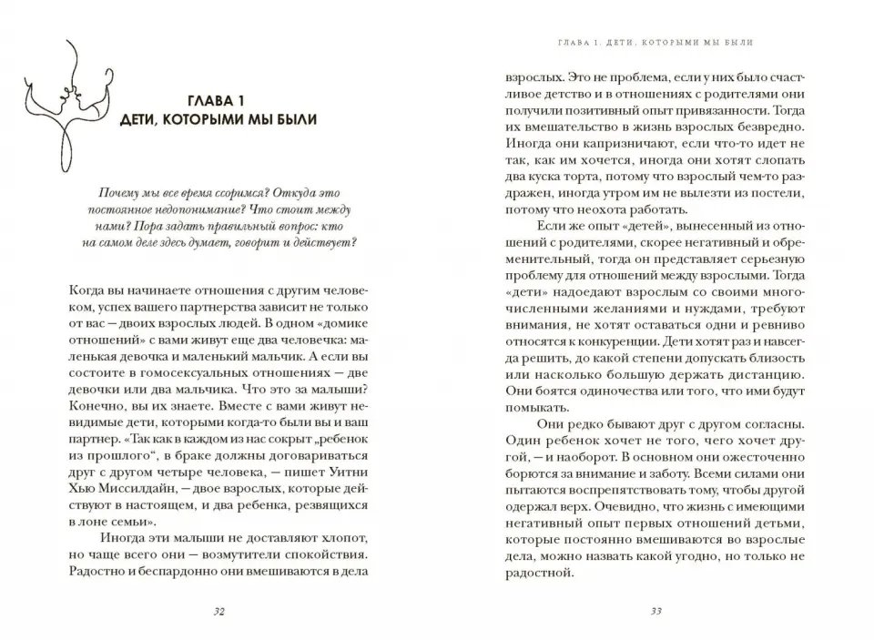 Ответить на подобные вопросы вам поможет ребенок, которым вы когда-то были. То, что вы узнали или не узнали о любви и доверии в отчем доме, сформировало ваш тип привязанности. А значит, внутренний ребенок указывает вам, как воспринимать того, кто вам дорог, - довериться ли ему или, оберегая собственную автономию, только и ждать, что вас обидят. Однако этот ребенок знает не больше вашего. И в ваших силах помочь ему повзрослеть. Ведь зрелая личность проявляется не в том, чтобы жить и действовать независимо, а в том, чтобы выстроить позитивную привязанность к близкому человеку.
