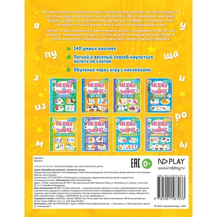 Все дети любят наклейки. В серии "Умные наклейки" они используются не только ради развлечения, но и для занятий.