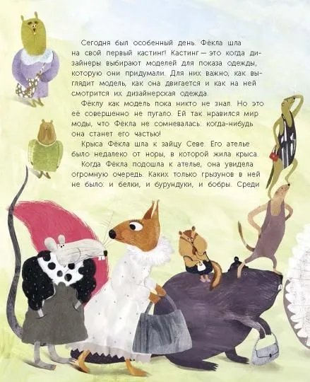 Крыса по имени Фёкла мечтала стать моделью и радовать поклонников красивыми нарядами. И всё бы получилось, если бы не крысиный хвост, который не соответствует моде и портит внешний вид! На что только не готова главная героиня, лишь бы выглядеть безупречно... К счастью, Фёкла вовремя понимает, что угнаться за модой и угодить всем невозможно. Куда важнее принимать себя таким, какой ты есть, и тогда всё обязательно получится. Из этой книги вы также узнаете интересные научные факты. Например, зачем крысам хвост и есть ли хвост у морских свинок? Что такое эволюция? А ещё кое-что о дредах и кастингах. Для старшего дошкольного и младшего школьного возраста.