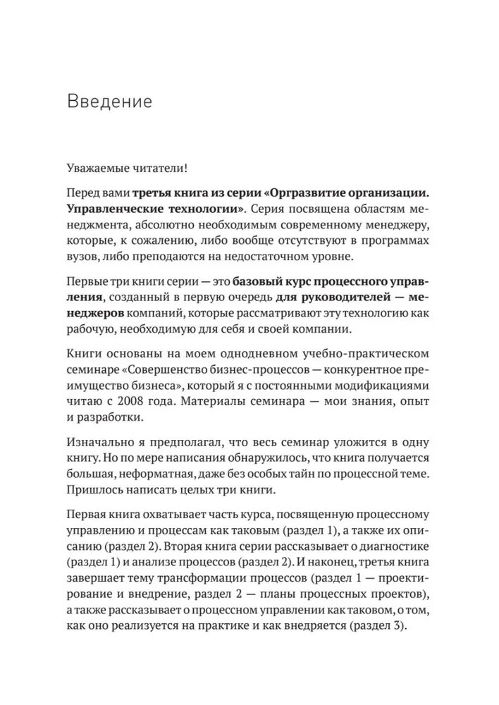 Данная книга завершает тему трансформации процессов (раздел 1: проектирование и внедрение, раздел 2: планы проектов), а также говорит о процессном управлении как таковом, о том, как оно реализуется на практике и как внедряется (раздел 3). Кроме того, приведены кейсы различных компаний на их пути к процессному управлению.