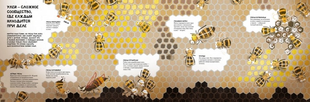 Внутри этой книги сюрприз: большая панорамная страница, которая расскажет об устройстве улья и слаженной работе пчелиной команды.