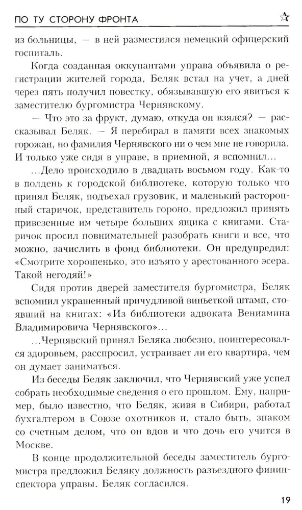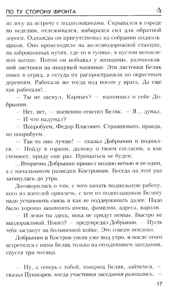 Один из самых популярных авторов военноприключенческого жанра Г.М. Брянцев (1904—1960) — участник Великой Отечественной войны, военный разведчик, не раз ходивший за линию фронта и сражавшийся бок о бок с народными мстителями против немецкофашистских захватчиков. Роман «По ту сторону фронта» посвящен всем безвестным героям, сложившим головы за свободу Отчизны в глубоком тылу врага.