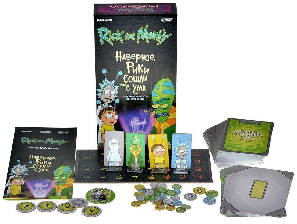 "Рик и Морти: Наверное, Рики сошли с ума" – настольная межвселенская погоня за энергией, завладеть которой суждено только одному чокнутому учёному! Возьми на себя роль Рика, Морти, Зипа или Кайла, попрыгай между вселенными и внедри свой потрясающий источник энергии... а затем укради эту энергию и воспользуйся в своих (безусловно, великих) целях!