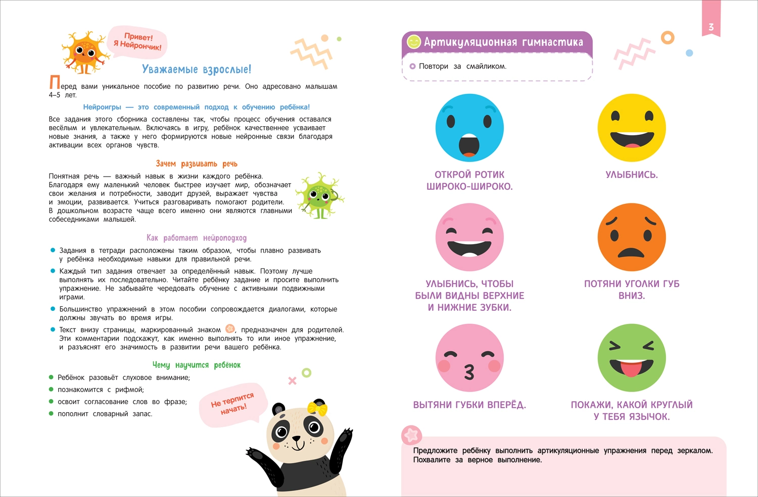 В этом пособии собраны нейроупражнения для детей 4– 5 лет. С их помощью ребенок в легкой игровой форме познакомится с основными звуками и поплнит словарный запас. А современная эффективная нейрометодика поможет ему быстро научиться строить фразы и короткие предложения.