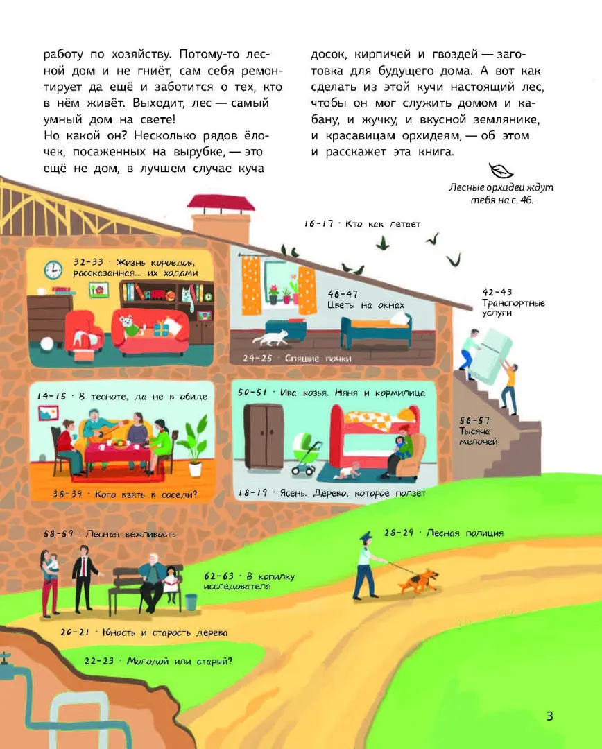 Лес похож на большой дом. У него есть этажи - ярусы растений и деревьев, окна, "прорубленные" бобрами, ковёр из мха и листьев и самый настоящий Интернет, позволяющий деревьям "общаться" друг с другом. Но самое интересное, что этот дом сам себя ремонтирует и заботится о своих обитателях. И они тоже - от самых маленьких букашек до огромных зубров - трудятся на благо леса и помогают друг другу. Для среднего школьного возраста.