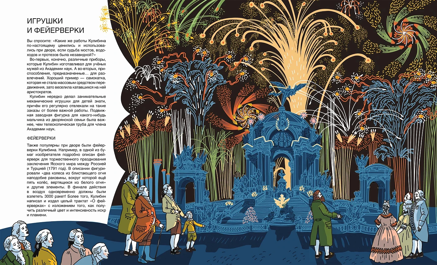 Иван Кулибин был великим механиком и изобретателем, гением-самоучкой, имя которого со временем стало нарицательным. Но если вы попробуете вспомнить, что он изобрёл, то в лучшем случае в голову придут часы «Павлин» из Эрмитажа (которые он не построил, а лишь починил). Мы же хотим рассказать вам о подлинном пути знаменитого мастера. Кулибин придумал множество удивительных вещей, которые опередили своё время. В этой книге вы прочтёте о кулибинских прожекторах и водоходах, о мостах и протезах, о самокатке и винтовом лифте.