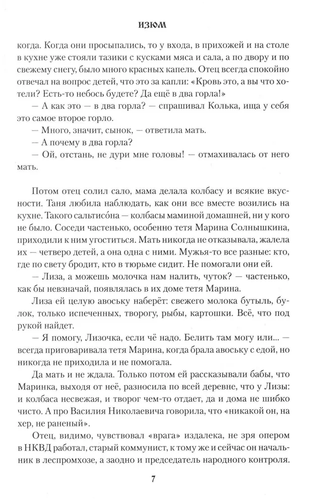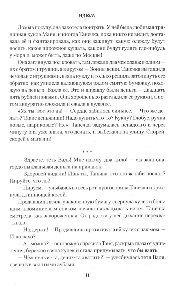 Книга повествует о простых советских девчонках: маленьких и больших. Героини живут или жили в деревне, но уверены, что счастье в городе. Автор пишет о девочке, которая любит диктатора-отца, о женщине, которая случайно убивает близкого человека, другая мирно работает в библиотеке и подрабатывает, продавая товары повседневного спроса, а ещё одна — вынуждена продавать себя. При чтении создаётся впечатление, что всё это один человек, который ищет любви и живёт как может. Деревня для них как островок души, которую каждая неосознанно боится потерять. Завершает книгу небольшой рассказ о том, как городские жители приехали в музей деревянного зодчества под открытым небом снимать кино о русской глубинке XVI века.