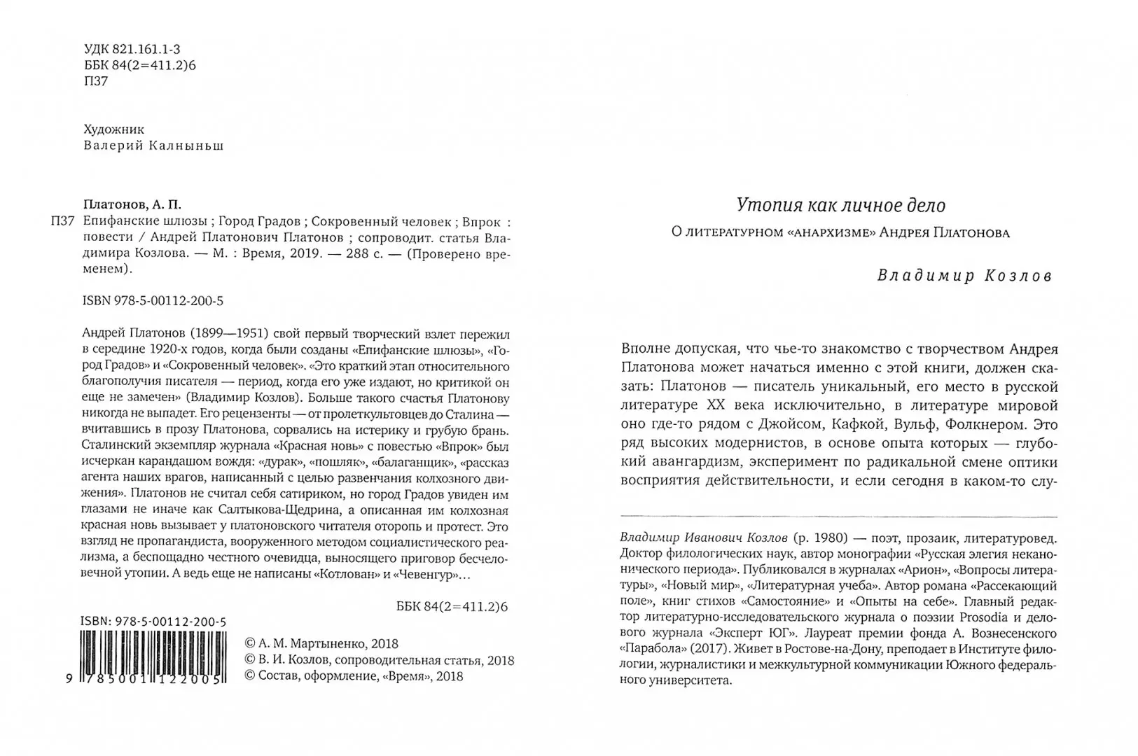 Андрей Платонов (1899-1951) свой первый творческий взлет пережил в середине 1920-х годов, когда были созданы "Епифанские шлюзы", "Город Градов" и "Сокровенный человек". "Это краткий этап относительного благополучия писателя - период, когда его уже издают, но критикой он еще не замечен" (Владимир Козлов). Больше такого счастья Платонову никогда не выпадет. Его рецензенты - от пролеткультовцев до Сталина - вчитавшись в прозу Платонова, сорвались на истерику и грубую брань. Сталинский экземпляр журнала "Красная новь" с повестью "Впрок" был исчеркан карандашом вождя: "дурак", "пошляк", "балаганщик", "рассказ агента наших врагов, написанный с целью развенчания колхозного движения". Платонов не считал себя сатириком, но город Градов увиден им глазами не иначе как Салтыкова-Щедрина, а описанная им колхозная красная новь вызывает у платоновского читателя оторопь и протест. Это взгляд не пропагандиста, вооруженного методом социалистического реализма, а беспощадно честного очевидца, выносящего приговор бесчеловечной утопии. А ведь еще не написаны "Котлован" и "Чевенгур"…