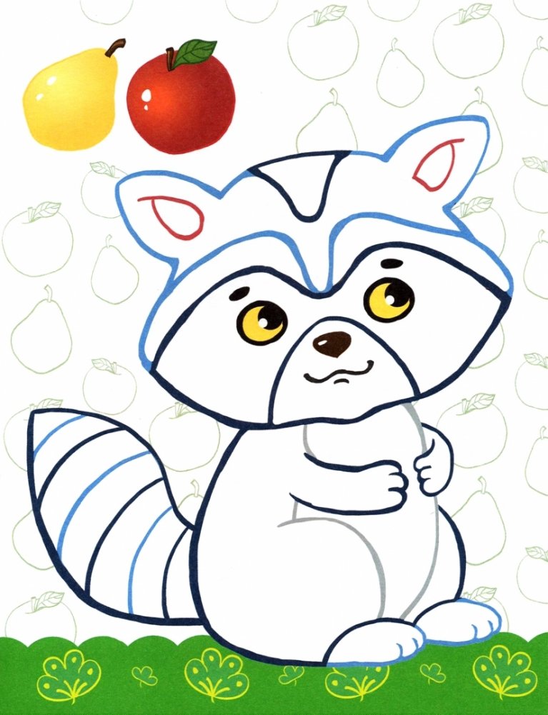Яркие образцы и цветные контуры подскажут малышу, какой цвет выбрать для раскраски каждого элемента.