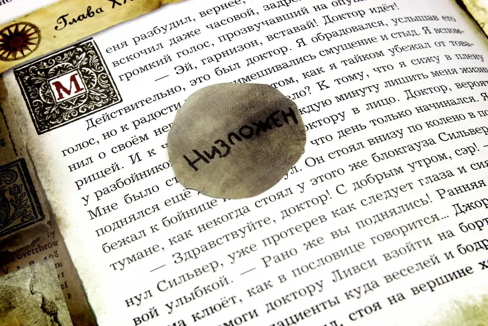 Здесь за текстом знакомого романа оживает эпоха, а в рассказах Капитана Флинта встает перед глазами грозная история пиратства. Здесь можно рассмотреть каждый уголок шхуны от салинга до кильсона, заглянуть в сундучок доктора Ливси, набрать команду корабля вместе со сквайром Трелони, научиться вести судовой журнал, прокладывать курс, считать пиастры и муадоры, стрелять из мушкета и пушки, узнать все о Желтом Джеке, о рифах и бакштагах, о Доке казней, об островах Драй-Тортугас и о разбойничьих гнездах в Испанском море.